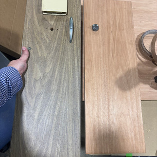 What a difference between Formica and real mahogany! I left the varnished pieces to dry for 24 hours before installing on the boat.