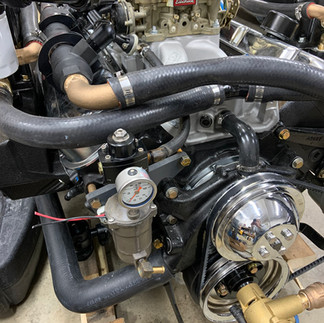 The Walbro pump is capable of producing anywhere from 6-8 psi of discharge pressure which for many carburetors is perfectly acceptable. I run Edelbrock 1409 carburetors on my engines and they run best at 5.5 psi so installing an adjustable fuel pressure regulator at the discharge of the pump allows me to dial in the pressure perfectly using the gauge for reference. Ever have your engines stall at low speeds after extended idling? Too much pressure at the inlet to the carburetor can cause the bowls to overflow at idle and may result in stalling. After adding the FPR, the engines idle great both hot and cold and in neutral or in gear. The pressure gauge provides verification that pressure is spot on and is a great troubleshooting aide should you ever suspect a fuel delivery problem is present (pressure would be lower than the setpoint).